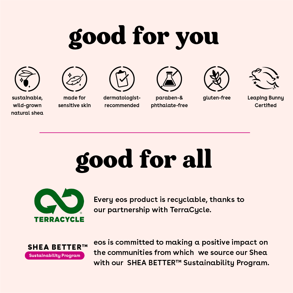 - Shea butter + coconut oil melt on contact to deliver 24-hour moisture and protective antioxidants.